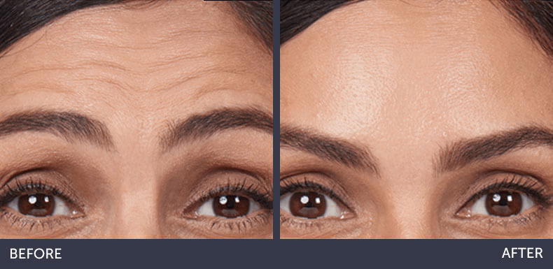 BOTOX® is an FDA-approved cosmetic injectable used to reduce muscle activity on the forehead, around the eyes, and between the eyebrows to eliminate lines and wrinkles, like “crow’s feet” and frown lines. Botox® results last up to four months and require no downtime.